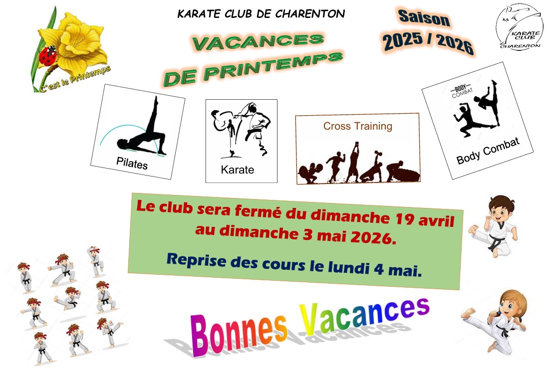 Karaté club de Charenton – Fermeture Vacances de Printemps